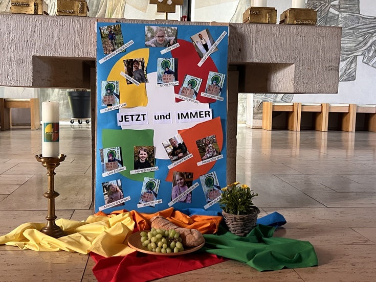 Herzlich laden wir Sie ein, Gast zu sein in unseren Kirchen Herz Jesu und St. Pius - hier auf der Homepage, aber natürlich umso lieber auch in unseren Gottesdiensten, Veranstaltungen, Feiern und allem, was wir sonst noch anbieten in unserer lebendigen Gemeinde. Und auch wenn Sie Rat und Hilfe brauchen in schwierigen Zeiten, nehmen Sie gerne Kontakt zu unserem Seelsorgeteam auf. Sie sind herzlich willkommen. Jetzt und immer - unter diesem Leitwort stehen auch die Mädchen und Jungen aus unserer PG, die vor kurzem Erstkommunion in St. Pius gefeiert haben.