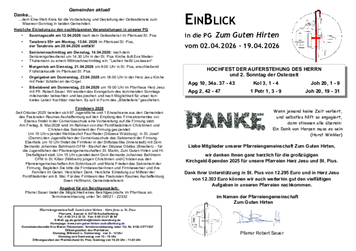 Herzlich laden wir Sie ein, Gast zu sein in unseren Kirchen Herz Jesu und St. Pius - hier auf der Homepage, aber natürlich umso lieber auch in unseren Gottesdiensten, Veranstaltungen, Feiern und allem, was wir sonst noch anbieten in unserer lebendigen Gemeinde. Und auch wenn Sie Rat und Hilfe brauchen in schwierigen Zeiten, nehmen Sie gerne Kontakt zu unserem Seelsorgeteam auf. Sie sind herzlich willkommen.