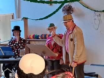Ein besonderes Highlight waren der Besuch des Prinzenpaares vom Karneval Klub Kakadu, ebenso wie die humorvollen Beiträge der Büttenrednerinnen und -redner. Mit einem Super-Vortrag hat uns wieder unser hochbetagter Senior und Faschingsfan Albin Imhof überrascht. Herzlichen Dank dafür!