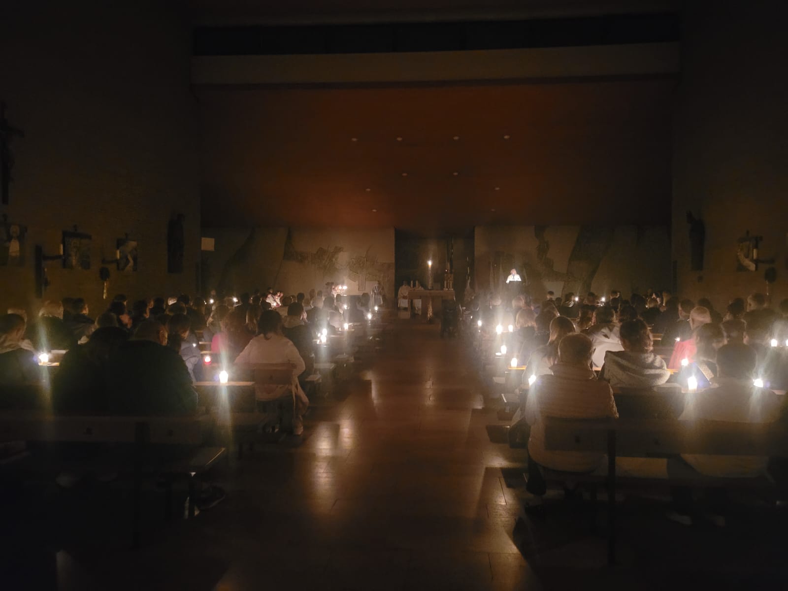 Am Gründonnerstag wurden den eintretenden Gottesdienstbesuchern in St. Pius die Hände gewaschen und ein kleines Holzherz als Zeichen der dienenden Liebe Jesu überreicht. Im Anschluss luden Birgitta Dahedl und Johannes Dürig erstmals zu einer gestalteten Ölbergwache ein.