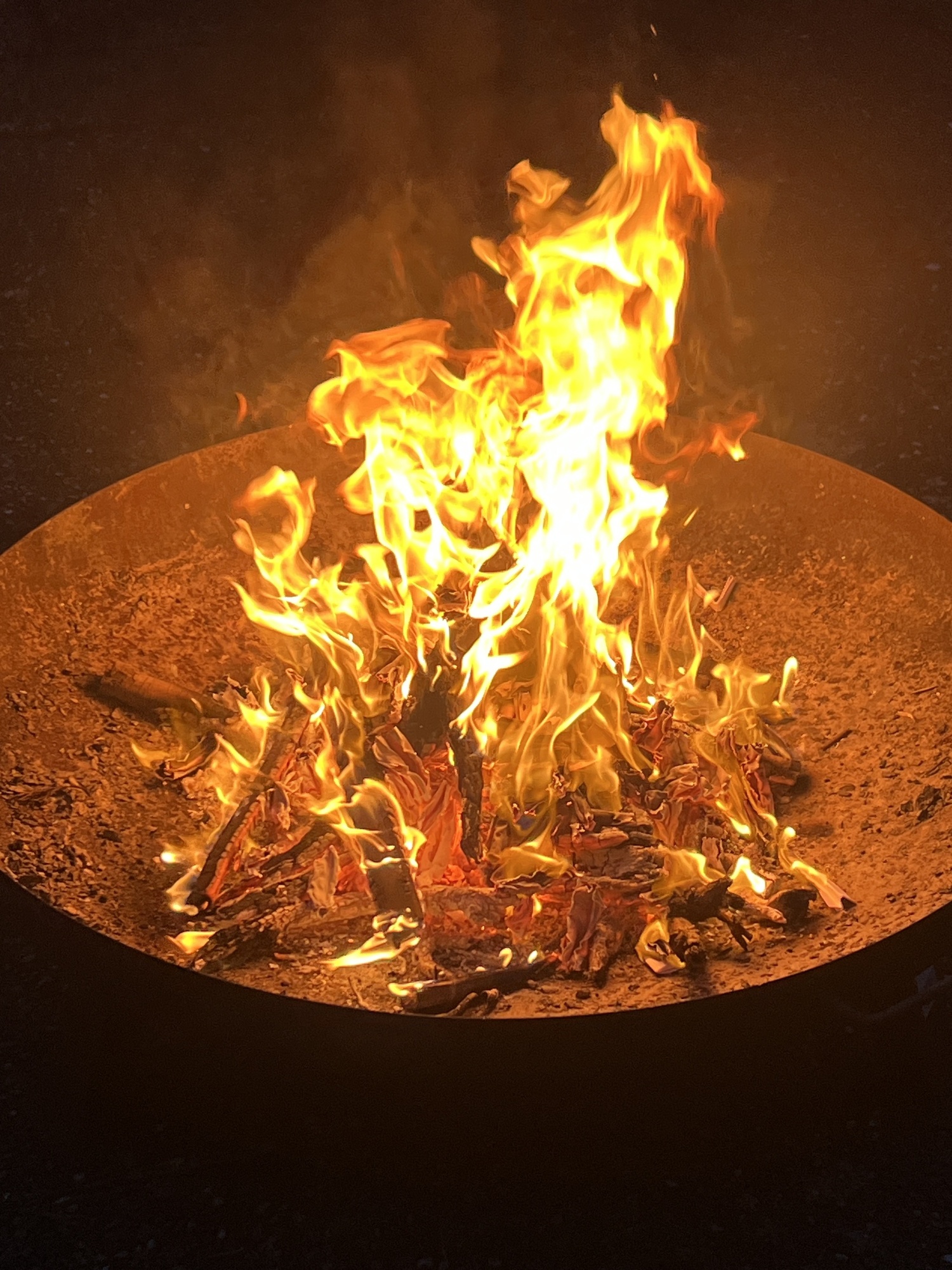Zur Feier des Karfreitags in Herz Jesu durften sich alle ein kleines Holzkreuz nehmen. Es sollte Zeichen sein für das eigene, persönliche Kreuz, das es zu tragen gilt. Diese vielen Kreuze wurden in einer Schale gesammelt und am Karsamstag im Osterfeuer verbrannt – als Zeichen der Wandlung.
