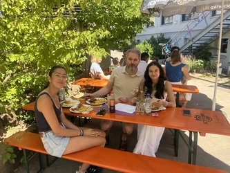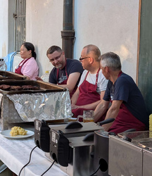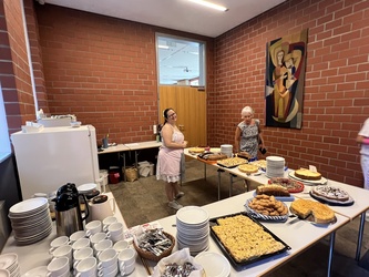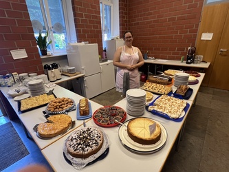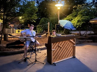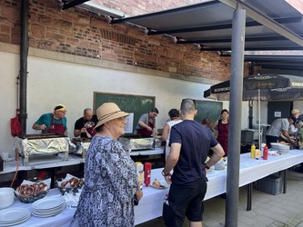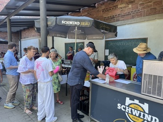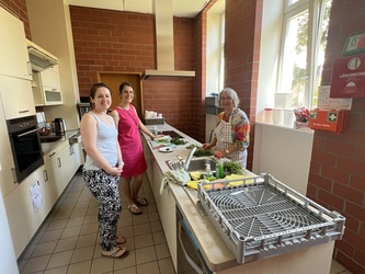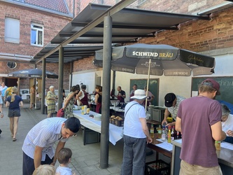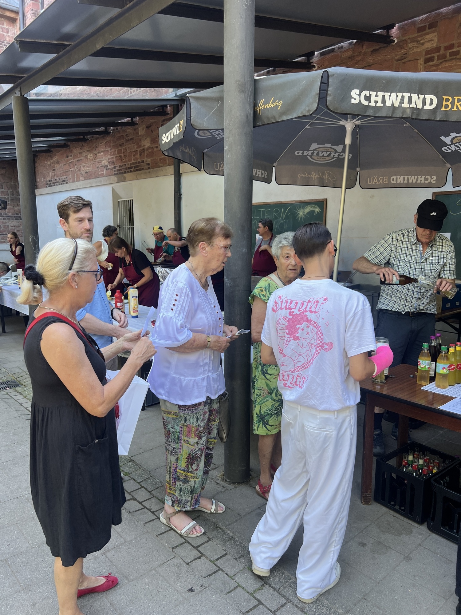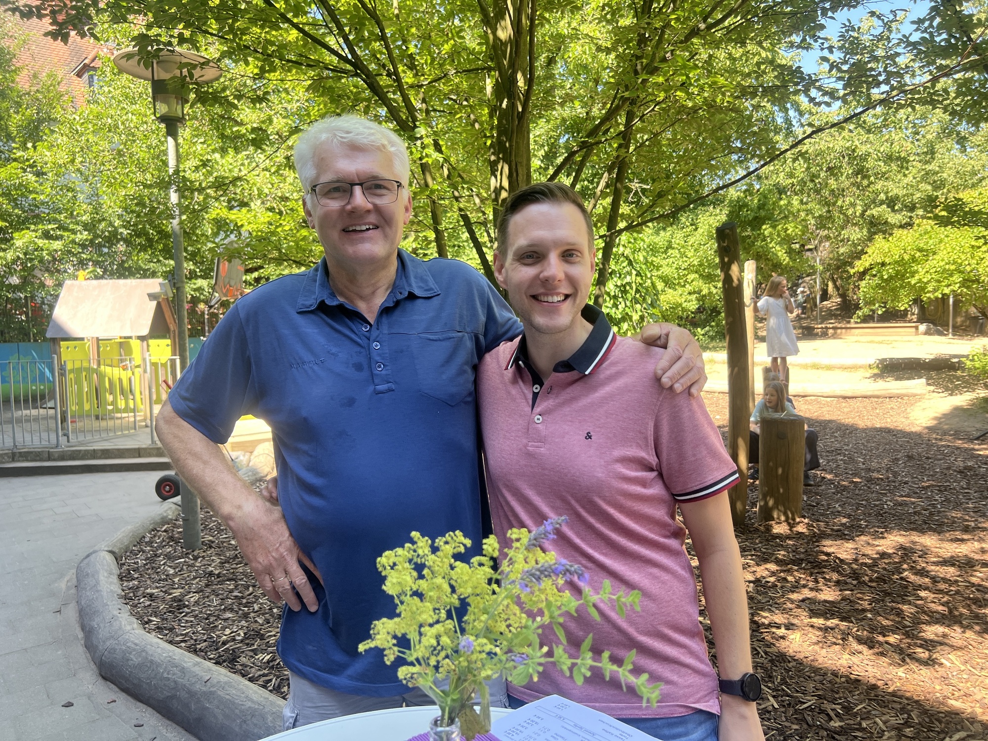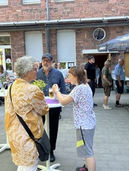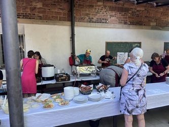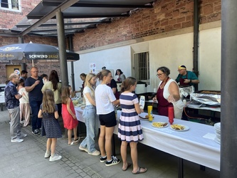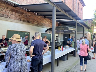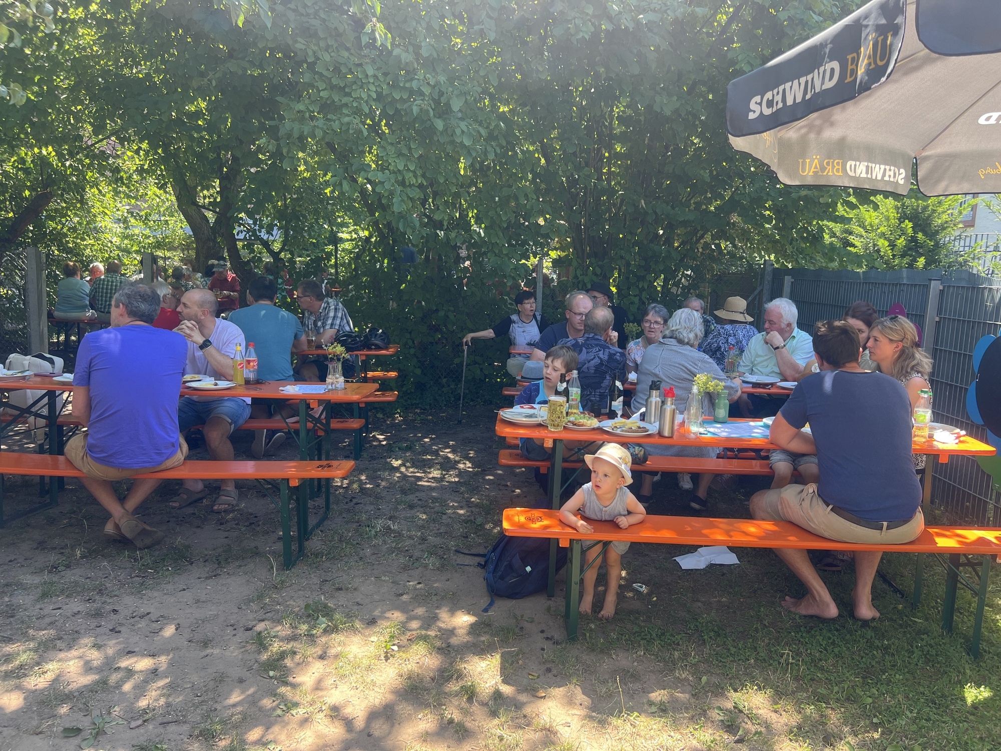 Zum gemeinsamen Pfarrfest hat die Pfarreiengemeinschaft Zum guten Hirten wieder am letzten Juniwochenende eingeladen. Zwei Tage lang feierten die Besucher rund um die Herz-Jesu-Pfarrkirche an der Saarstraße, und das bei viel Sonnenschein und Temperaturen um die 30 Grad. Los ging es bereits am Samstagnachmittag mit dem Sommerfest des Familienstützpunkts Innenstadt und der Kita Herz Jesu mit Spielmöglichkeiten, Kaffee und Kuchen. Am Abend startete dann das Pfarrfest, ebenfalls auf dem weitläufigen Gelände der Kita. Die Helferteams am Grill, der Essensausgabe, am Getränkeausschank, an der Kasse, am Kuchenstand, in der Küche und an der Spülmaschine sorgten für einen schönen, geselligen Abend. Musikalisch richtig gut unterhalten wurden die Gäste von Andi Herold und Silas Schmitt an Gitarre und Klavier.