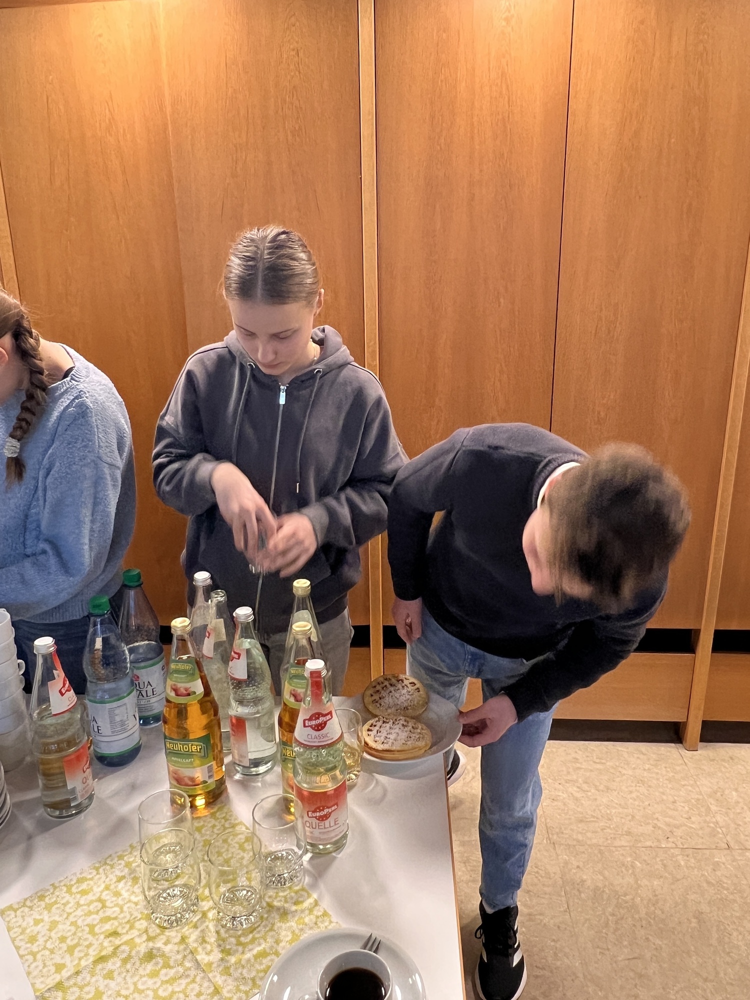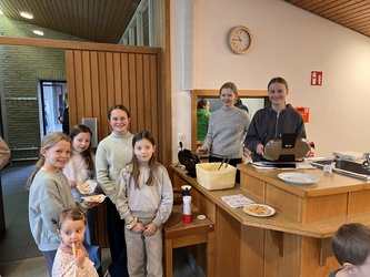 Unsere Firmlinge haben sich etwas einfallen lassen: Am vergangenen Sonntag richteten Moritz, Felix, Elisa, Charlotte und Luise das Sonntags-Café im Pfarrsaal aus. Auch mit Hilfe ihrer Eltern haben sie Kuchen gebacken, Kaffee gekocht und frische Waffeln zubereitet. All das haben sie den vielen Besuchern nach dem Gottesdienst gegen eine Spende angeboten. Die Idee hinter der Aktion: jeder Jugendliche, der sich im Bistum Würzburg heuer zum Firmkurs angemeldet hat und an der Vorbereitung teilnimmt, hat vom Bischof fünf Euro erhalten – als Startkapital sozusagen. Aus diesen fünf Euro sollen die Jugendlichen mehr machen und den Betrag dann als Spende zurückführen.