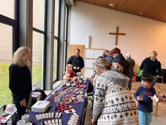 Für den guten Zweck waren an diesem Sonntag auch Robert Eidenschink und Silke Kraus vor Ort: sie verkauften selbstgefertigte kleine Geschenke zum Valentinstag. Hier fließt der Erlös an den Verein Sonetschko-Kinderheimhilfe Ukraine e.V. comü