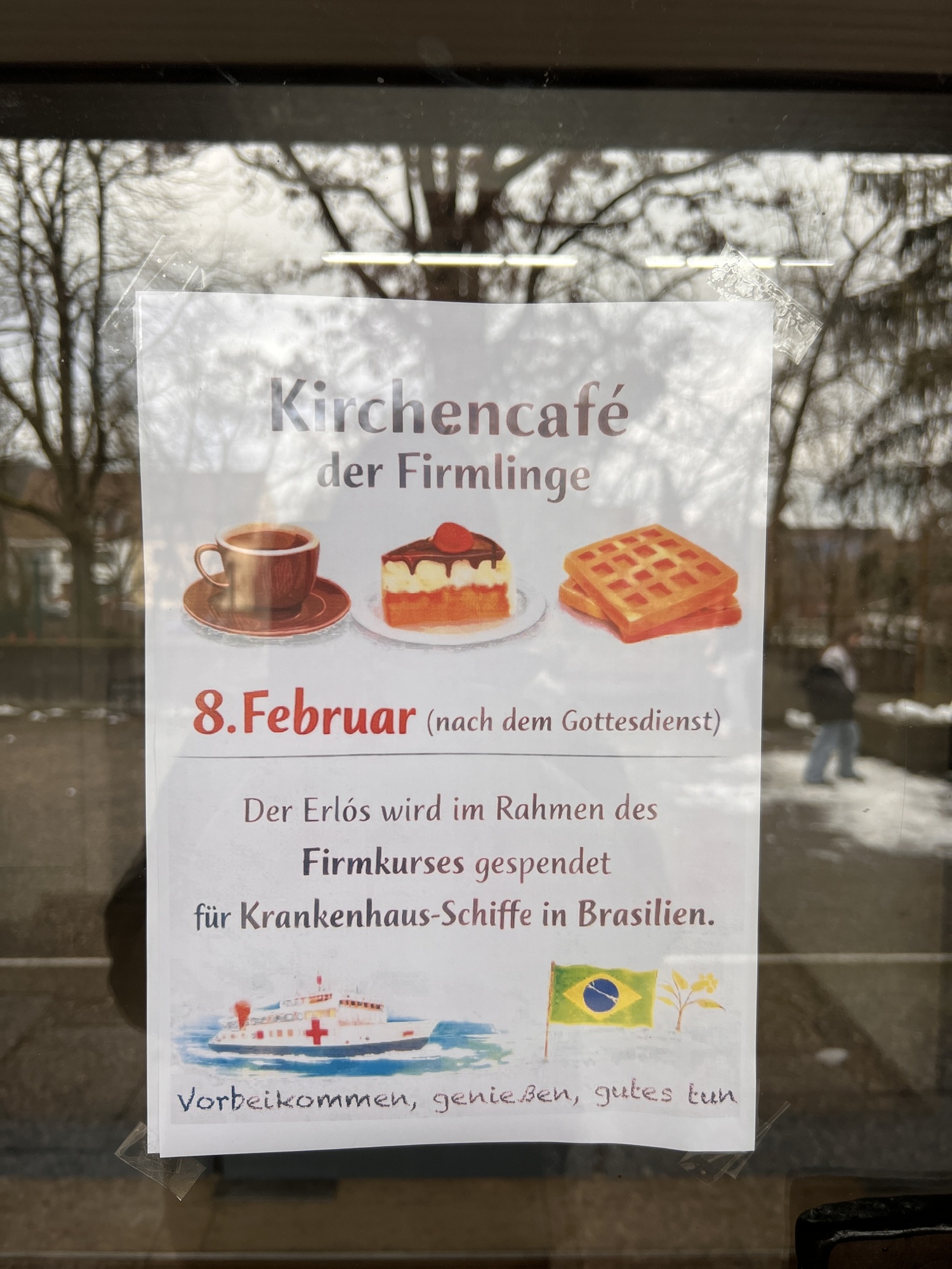 Unsere fünf jungen Firmlinge – ein Teil der Gruppe aus unserer PG – haben das mit großem Erfolg umgesetzt: aus 25 Euro Einsatz sind gut 250 Euro geworden, so viel haben die Gäste beim Sonntags-Café gespendet. Der Erlös kommt den Krankenhaus-Schiffen im brasilianischen Partnerbistum Óbidos zugute.