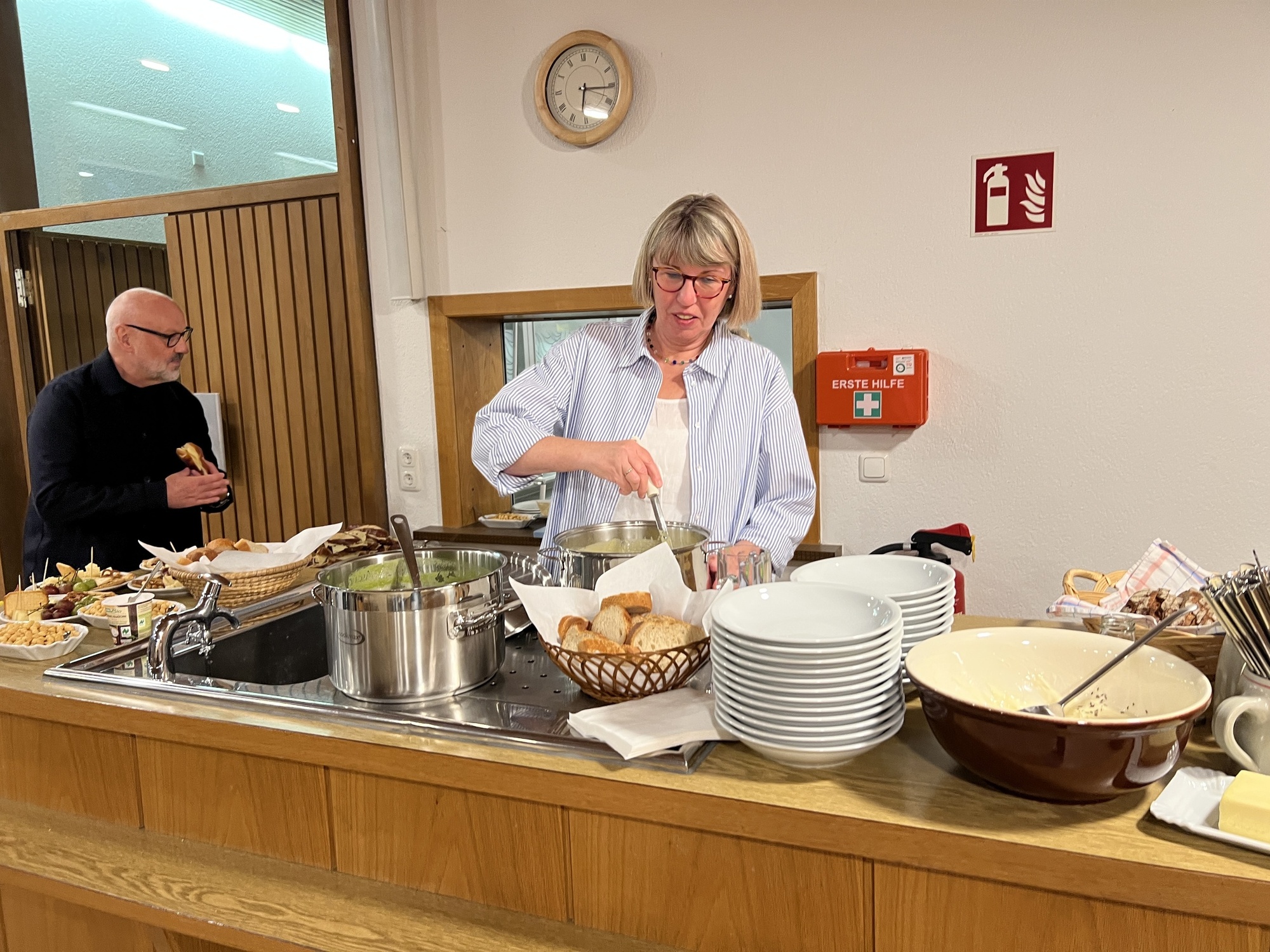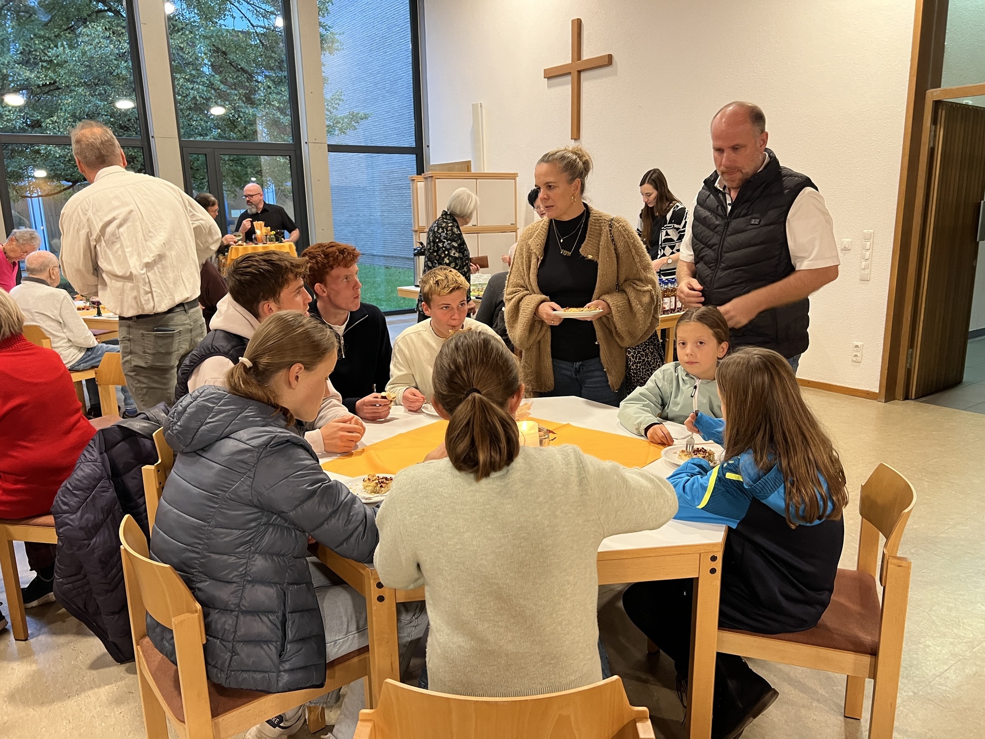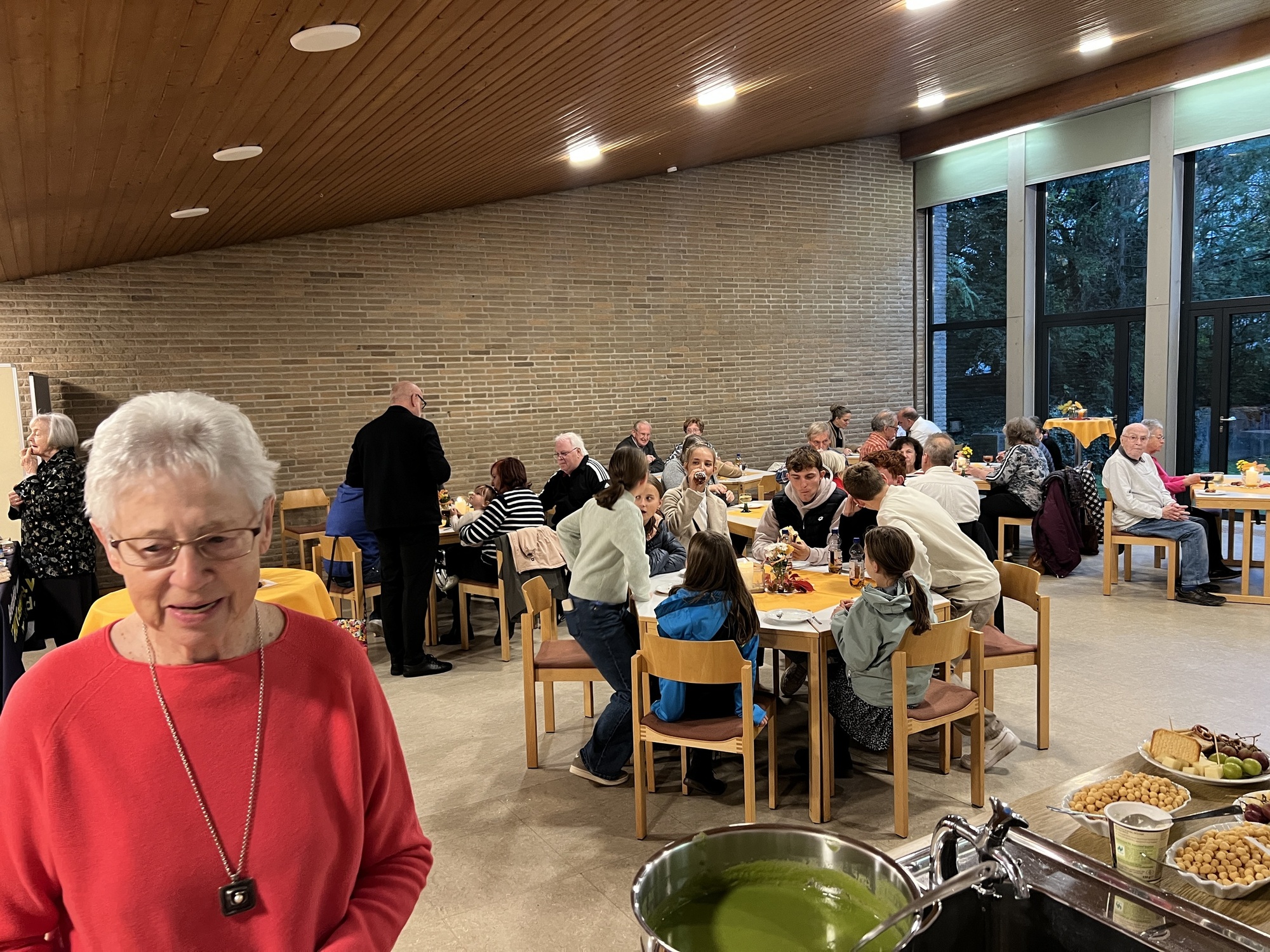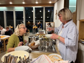 Zum dritten Mal haben wir Weinfest in St. Pius gefeiert. Nach dem Vorabend-Gottesdienst zum Erntedank in der St.-Pius-Kirche, den Pfarrer Robert Sauer gemeinsam mit Diakon Alois Kern zelebrierte, ging es in den benachbarten Pfarrsaal. Dort hatte das engagierte Helferteam bereits alles vorbereitet: Es gab mehrere Sorten Wein, dazu alkoholfreie Getränke, selbstgebackenen Zwiebelkuchen, Käsestangen, hausgemachten Kochkäse und zwei leckere selbstgekochte Suppen sowie zum Nachtisch selbstgebackene Kuchen und Kaffee. Eine schöne Gelegenheit, sich wieder einmal zu begegnen und auszutauschen.